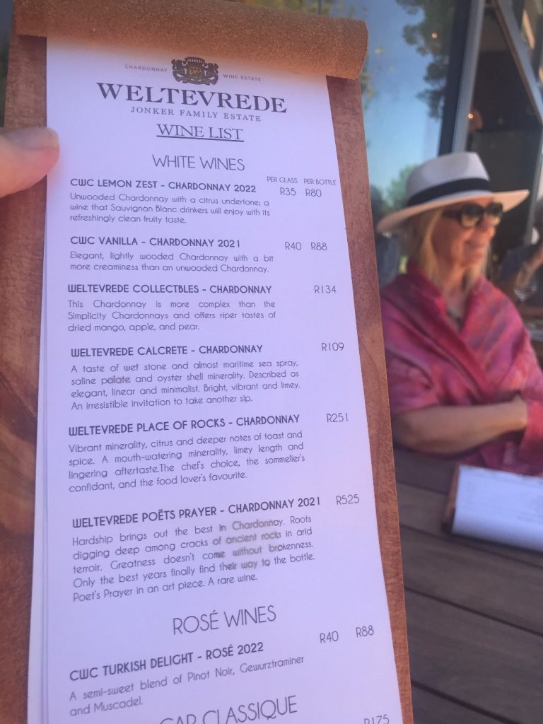 Flere gode produsenter er ikke i Norge. Weltevrede, for eksempel. Noen interesserte importører uti der? De har også en restaurant. Vinprisene er helt i kjelleren… Kvaliteten god.